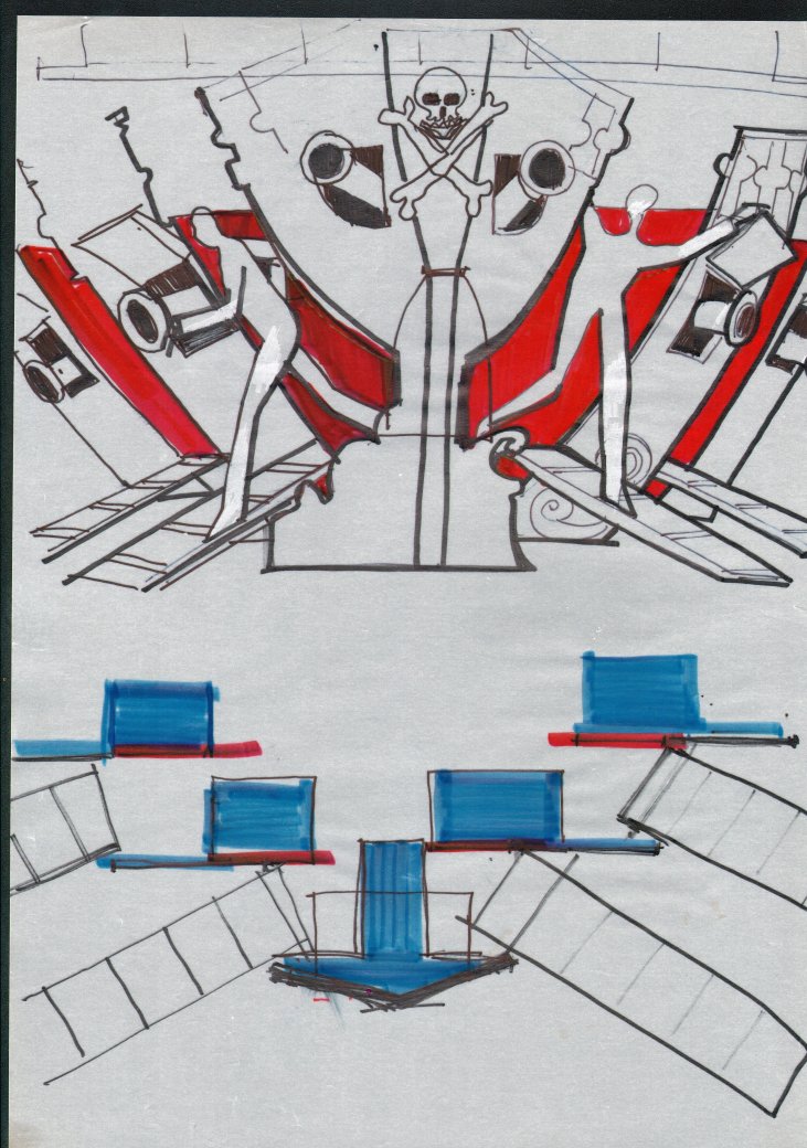 1985-11-14 1-2-3 show Zeeroverij 189 Published 24 september 2015 at 731 × 1040 in Roland de Groot 1-2-3 show: Zeeroverij (KRO, 14-11-1985), regie Guus Verstaete jr., decor Roland de Groot. Collectie Roland de Groot