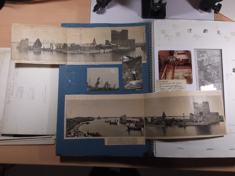 De eerste pagina van het plakboek toont het indrukwekkende openlucht decor van H.Th. Wijdeveld voor De vliegende Hollander op de Kager plassen in 1930. Weijnand voerde de supervisie over de bouw en kwam daarvoor 1 maand over uit Berlijn waar hij na zijn afstuderen naartoe was getrokken. Hij ontwierp ook de kostuums.
