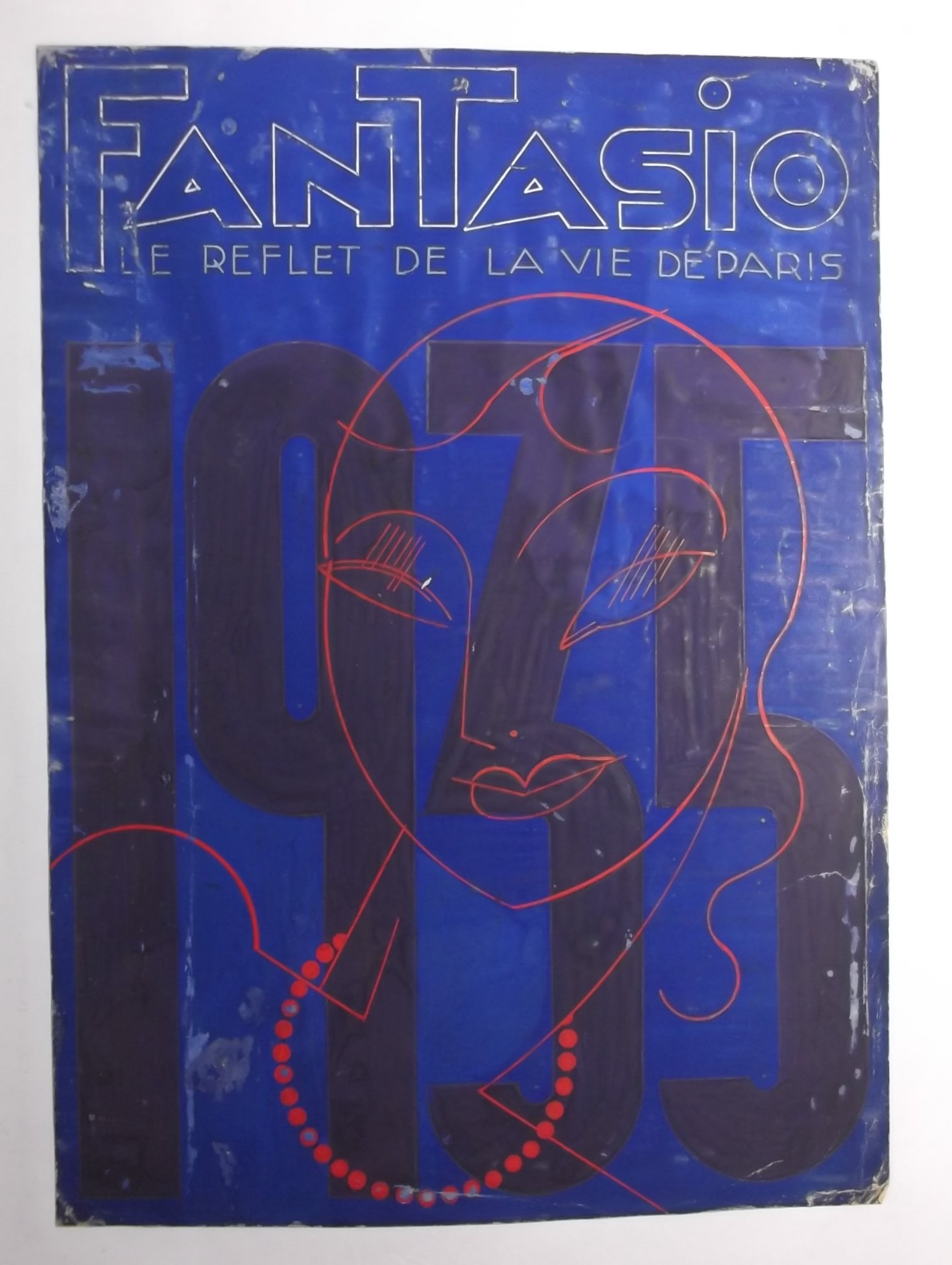 DSCF2620 Published 18 juli 2015 at 1468 × 1950 in archief Weynand Grijzen: plakboek 1928-1958 Origineel van het omslagontwerp voor het Franse blad Fantasio. In de jaren 30 verblijft Grijzen met enige regelmaat in Parijs dankzij zijn vriendschap met het Franse echtpaar Dumont. ca 1934