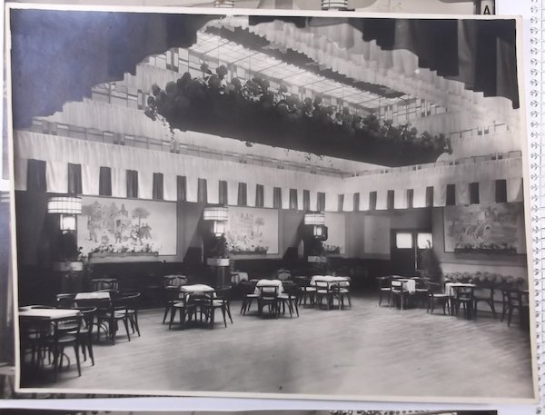 DSCF2701 Published 18 juli 2015 at 2043 × 1557 in archief Weynand Grijzen: plakboek 1928-1958 Grijzen decoreerde de feestzaal in hotel Krasnakolsky wat na de bevrijding ingericht werd als feestzaal voor de Amerikaanse militairen.